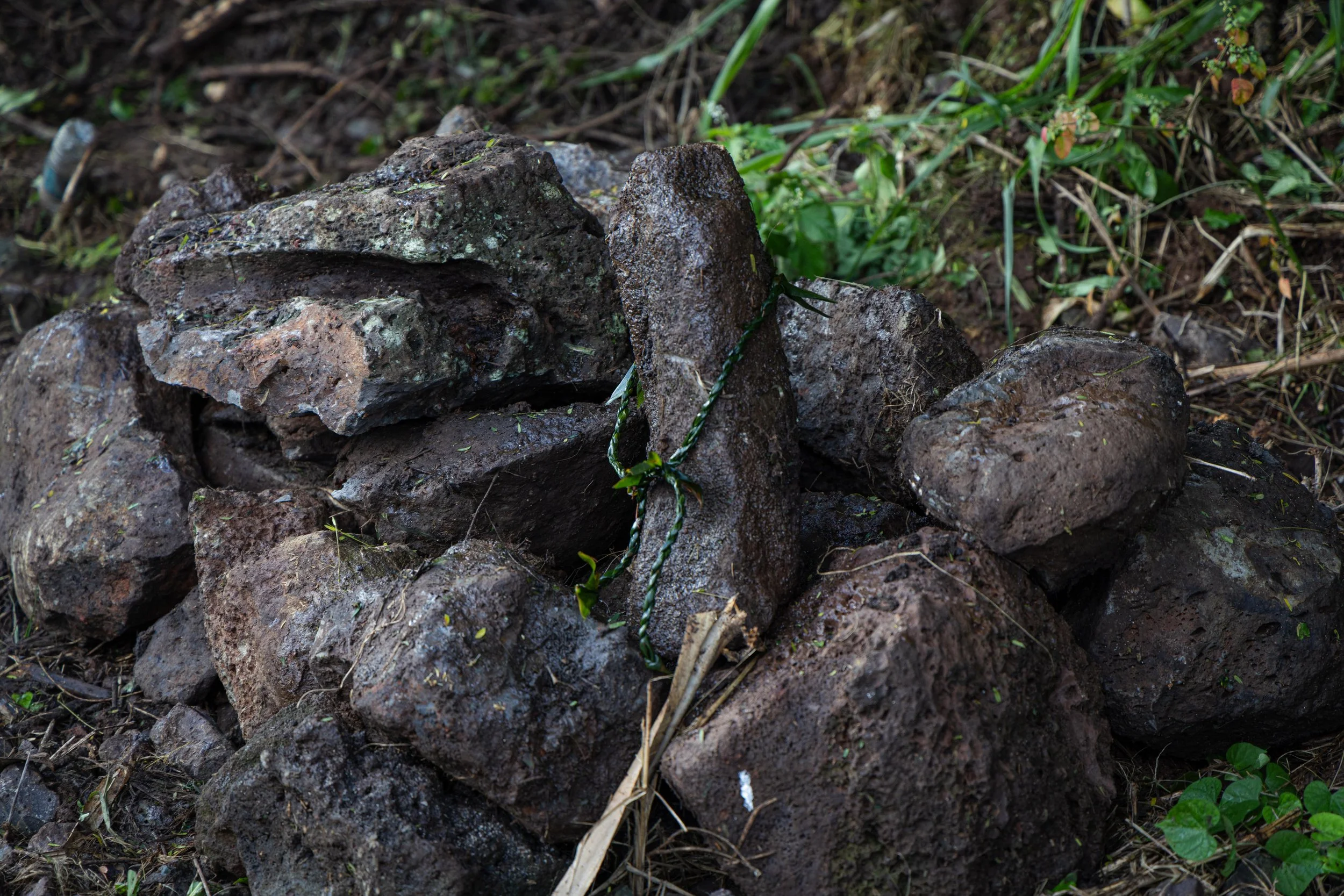 In Hawaiian culture, pōhaku hold deep cultural and spiritual significance. They are regarded as living entities imbued with mana and connected to the spirit of the kūpuna- ancestors who are forever a part of the ʻāina. Waimea Valley acknowledges the importance of the fallen pōhaku, which have been seperated from their moutnain home, and affirms that they must be handled with dignigty, reverence, and care.